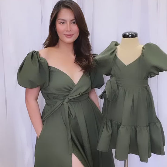This stunning midi dress is expertly crafted from luxurious cotton linen, handsewn with care in the Philippines. Featuring an off-shoulder design and adorned with a side slit and convenient pockets, it exudes an air of elegance and sophistication.